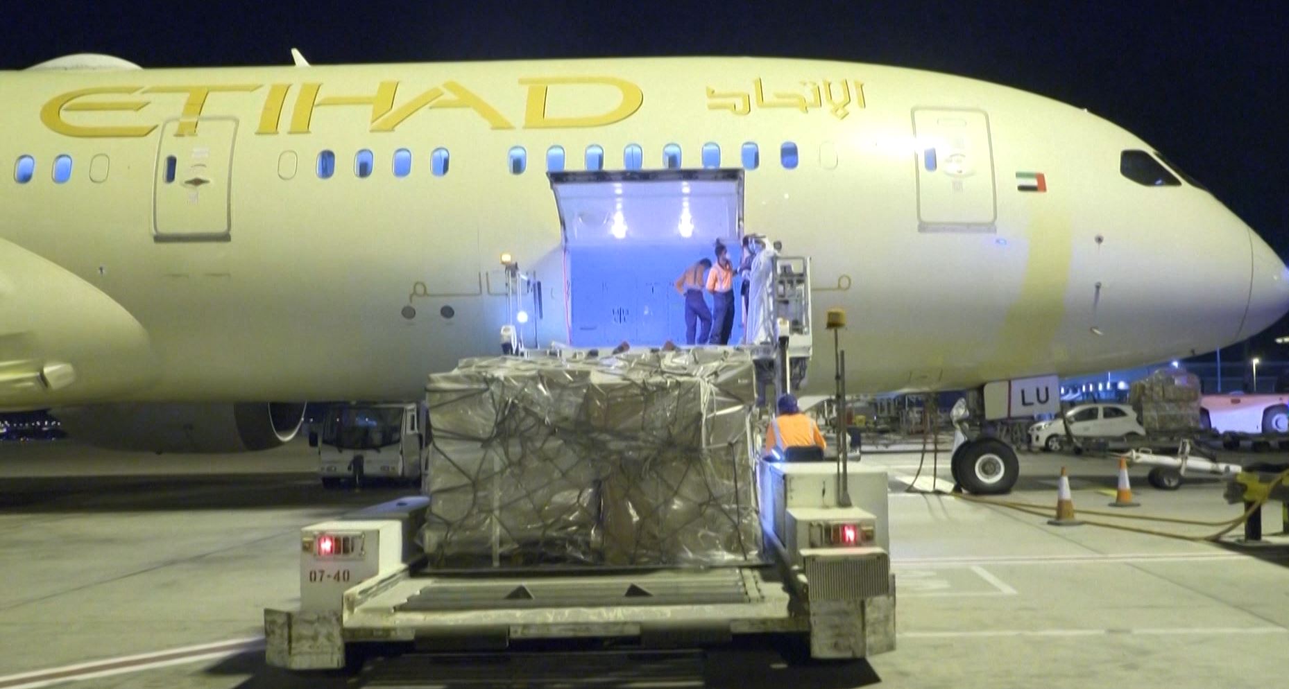 United Arab Emirates sends an aid plane carrying approximately 10 tonnes of medical supplies to Italy to support the virus-hit country in combating the COVID-19 pandemic. This initiative is part of the UAE's commitment to cooperating with countries affected by the COVID-19 outbreak.